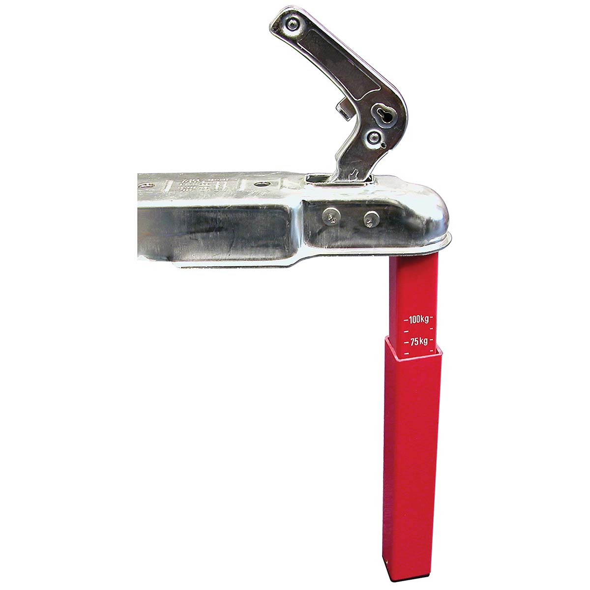 A ball pressure gauge. Measure the draw bar load of a trailer or caravan. The meter provides accurate scaling (12.5 kg) and measures up to a weight of 100 kg.