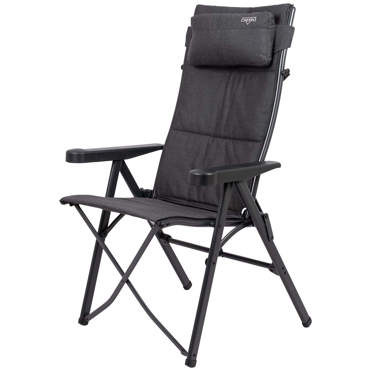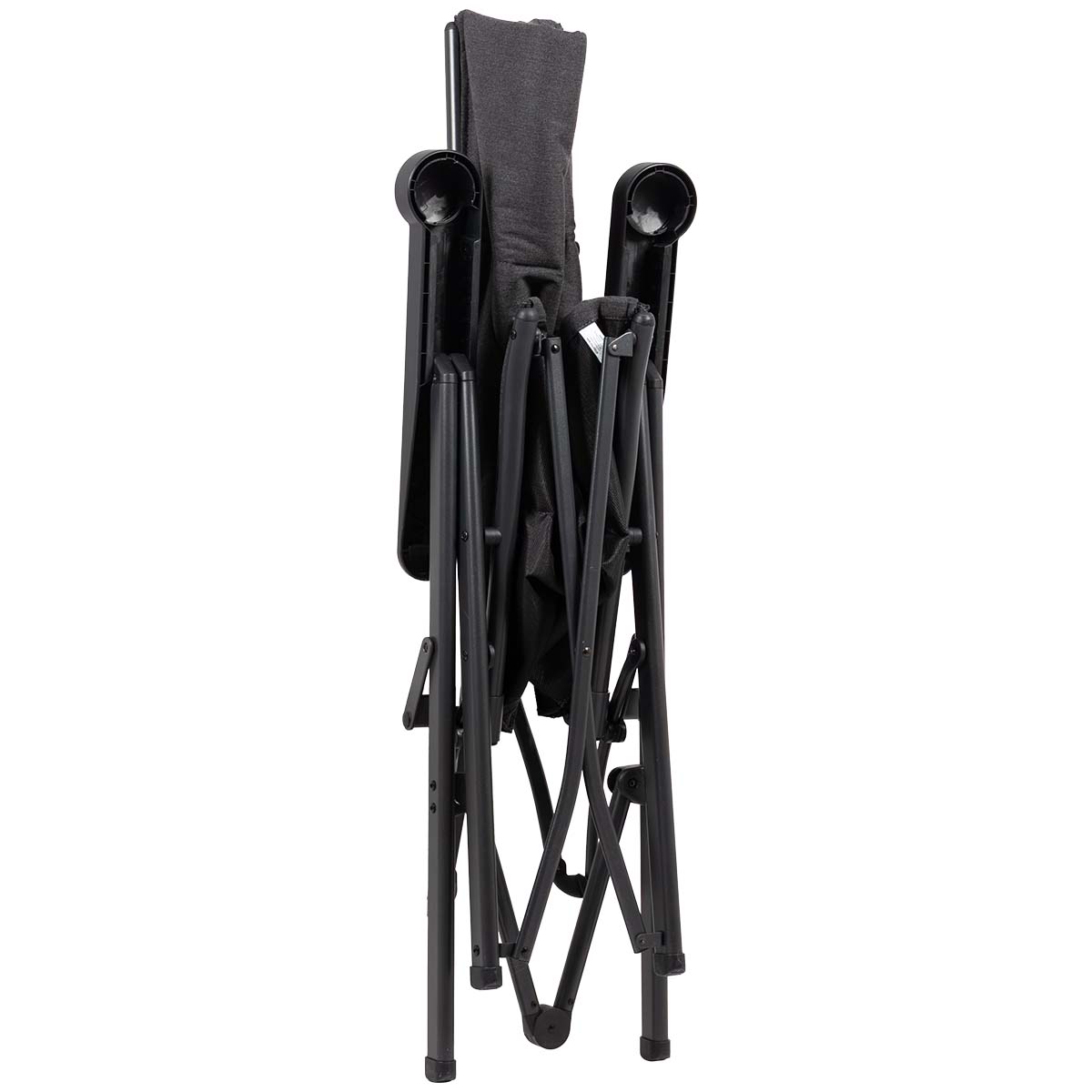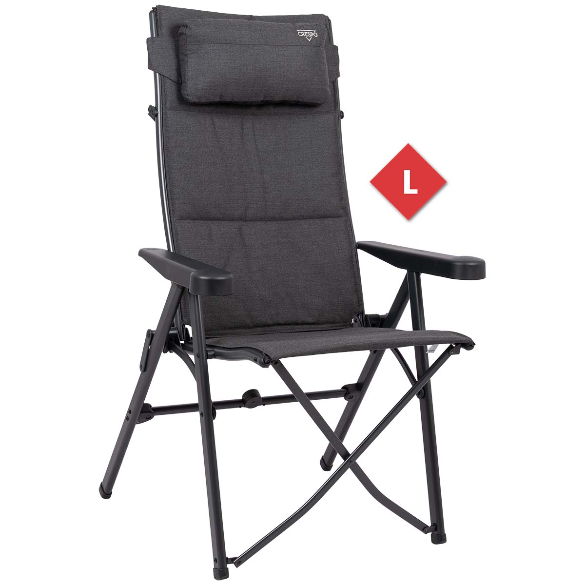Een zeer luxe standenstoel en vouwstoel in één. De stoel heeft een hogere zit en is geschikt voor de langere mens. Deze stoel biedt maximaal comfort door de in 7 standen verstelbare rugleuning en de gepolsterde Tex-Comfort stof. Deze comfortabele stof is zeer onderhoudsvriendelijk, bestand tegen verkleuring door de zon en waterafstotend. Hierdoor is de stoel veel sneller droog dan stoelen met een traditionele schuimvulling. Ook is deze stof afneembaar en daardoor ook gemakkelijk uitwasbaar. Daarnaast zijn zowel de rugleuning, de zitting en de armleggers ergonomisch gevormd. De stoel is voorzien van een gepoedercoat verstevigd frame met safety lock. Ingeklapt is deze stoel zeer compact en daardoor gemakkelijk mee te nemen.