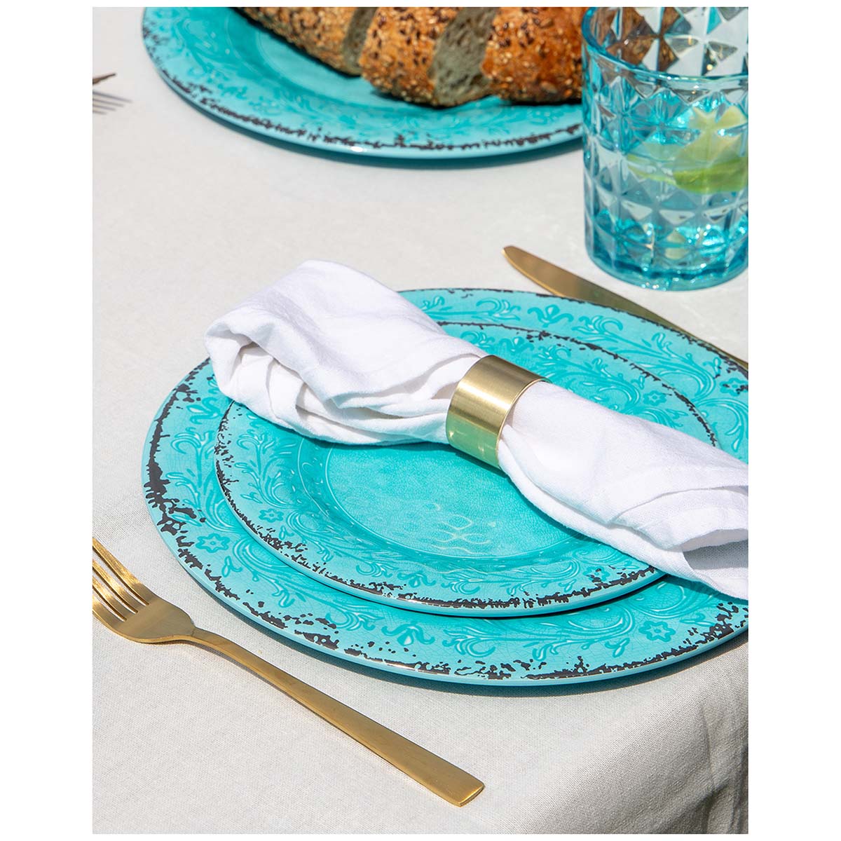 Een stijlvol turquoise kleurig dinerbord uit de Stone line collectie. 100% Melamine van hoge kwaliteit, vrijwel onbreekbaar en kraswerend. Het dinerbord is geluiddempend en hygienisch door de vervangbare antislip oplossing. Ideaal voor op de camping, thuis of voor op de boot. Bovendien is het dinerbord lichtgewicht, geschikt voor in de vaatwasser en food approved. Diameter: Ø 27 cm.